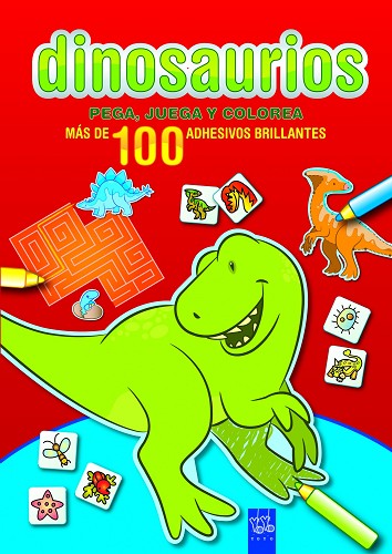 • PEGA,JUEGA Y COLOREA.ROJO.DINOSAURIOS
