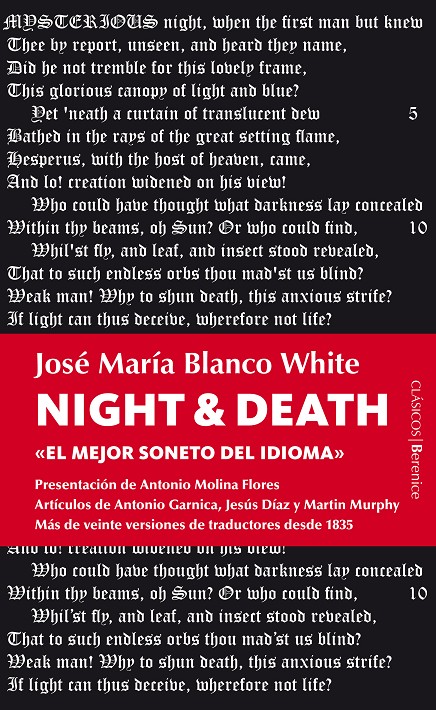 Así lo consideró el poeta romántico inglés Coleridge, sólo comparable a los más «ardorosos» sonetos shakespirianos. En esta edición ofrecemos las dos versiones inglesas, una versión latina y unas 15 versiones en español, algunas históricas y otras de nuevo cuño (de traductores de primer orden (Justo Navarro, Diego Romero de Solís, Yolanda Morató, jENARO tALENS, Antonio Rivero Taravillo). Además se ofrecen dos textos de máximos especialistas en su obra, Martin Murphy y Antonio Garnica, donde se habla del origen de este soneto, «Night and Death», y de su importancia en la obra de este escritor español.