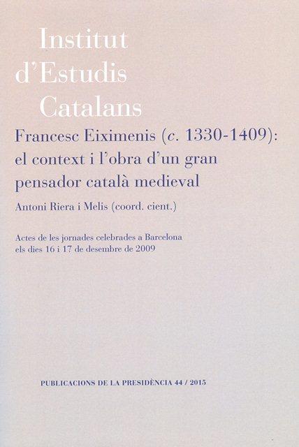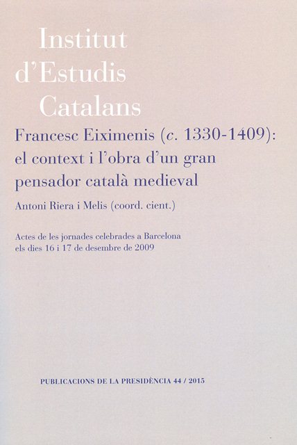 Entre el 6 de març i el 15 de maig de 1409 va morir a Perpinyà Francesc Eiximenis, un dels pensadors catalans més original, polifacètic i fecund. Les seves obres transcendiren àmpliament les fronteres de la Corona catalanoaragonesa i circularen arreu d?Europa, com ho demostren els nombrosos manuscrits i incunables disponibles. Conscients de la magnitud i la qualitat de la seva obra, la Presidència i les seccions Històrico-Arqueològica i de Filosofia i Ciències Socials de l?Institut d?Estudis Catalans van decidir declarar el 2009, coincidint amb el sis-centè aniversari del seu traspàs, Any Francesc Eiximenis, organitzar algunes activitats de caire científic i de divulgació, i tancar la remembrança amb un cicle de conferències en què s?analitzéssin el context i l?obra del franciscà gironí, a la llum de les darreres aportacions de la recerca. Aquest llibre conté el text corregit de gairebé totes les intervencions dels experts que hi van participar.