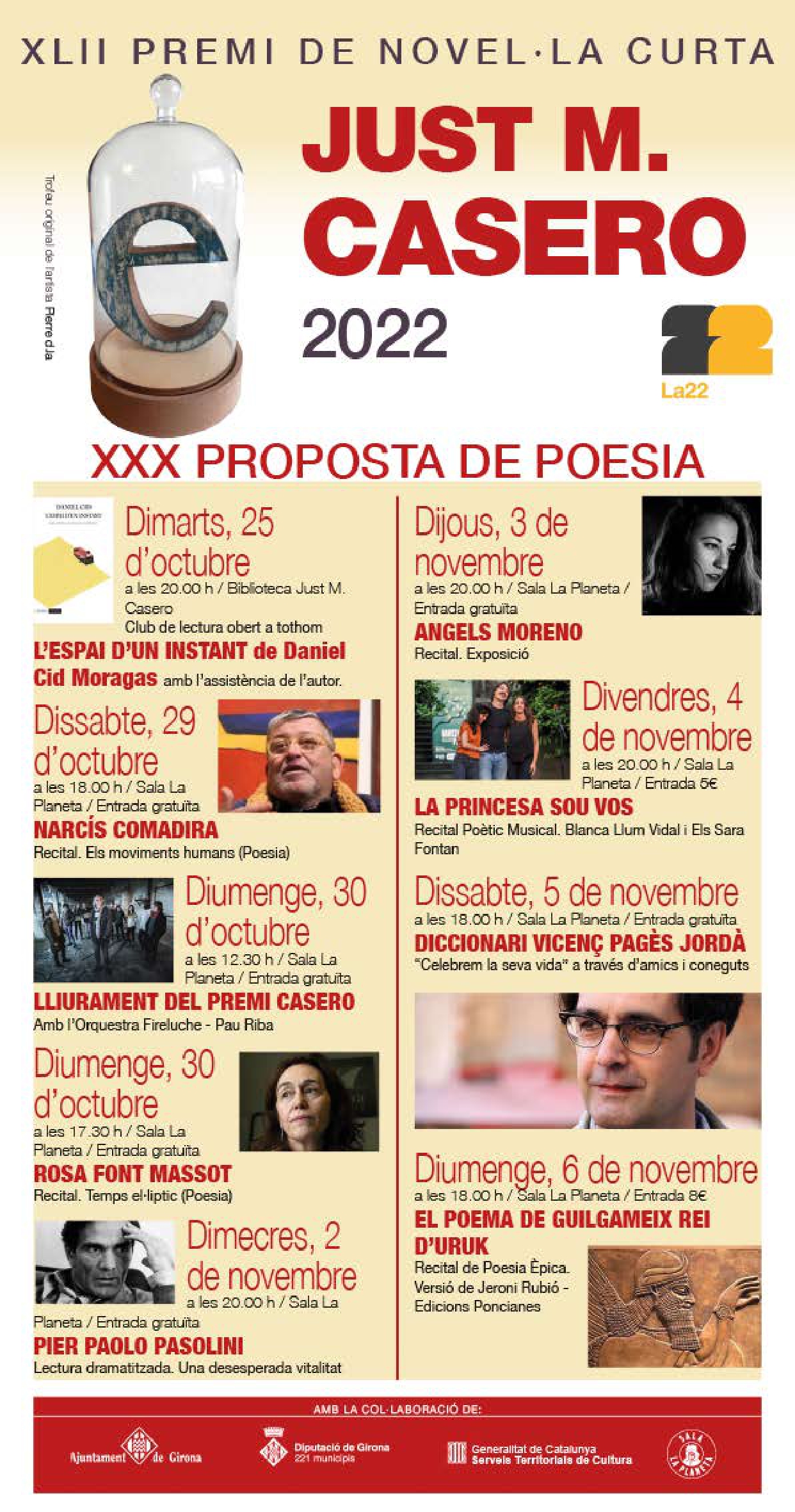 No sempre més és sinònim de millor. N’és una bona mostra la quantitat d’obres que aquest any es presenten al XLII Premi Just M. Casero, convocat per la Llibreria 22, que de les 53 de fa dos anys i les 33 de l’última edició ha passat a rebre aquest any 26 obres aspirants a millor novel·la curta del 2022. Sense anar més lluny, l’any passat qualsevol de les quatre novel·les finalistes mereixia haver-se publicat. A més de la guanyadora, L’espai d’un instant, de David Cid, la finalista, d’Òscar Palazón, Tractat d’anatomia, ho farà en breu, així com l’obra finalista de fa dos anys, escrita per Maria Pascual, tal com han volgut destacar Guillem Terribas i Jordi Gispert.