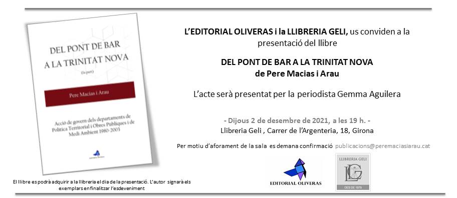 PRESENTACIÓ DEL LLIBRE " DEL PONT DEL BAR A LA TRINITAT NOVA "