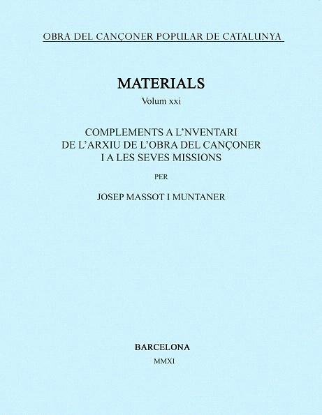 OBRA DEL CANÇONER POPULAR DE CATALUNYA-21.MATERIALS