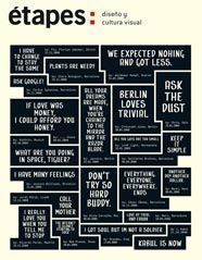 Basándose en las letras manuscritas con las que el Evening Standard anunciaba el titular de portada a través de sus distribuidores callejeros, el equipo barcelonés Folch Studio ha diseñado la tipografía Trivial y, junto a Quompendium, ha desarrollado una aplicación para que los usuarios noticien sus reflexiones o comentarios. La portada de étapes 9 recoge una pequeña selección de estas frases y presenta en sociedad la Trivial Font en formato impreso.