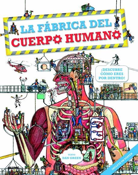 ¡Conoce a los trabajadores de la fascinante fábrica del cuerpo humano! Para que esta maravillosa máquina del cuerpo humano funcione bien y no se detenga, los operarios trabajan sin parar durante 24 horas al día estirando tendones, distribuyendo sangre o lanzando saliva. Deslízate por las arterias y chapotea en el estómago; ¡cuidado con la boca, que muerde y tritura!; no te quedes atascado en la mucosidad seca de la nariz...; intenta encontrar al Señor Huesitos, el esqueleto, ¡que se esconde por las páginas de todo el libro! Como recompensa, si lo localizas, podrás obtener una neurona cerebral. ¡Ponte las botas y el casco y entra ahora mismo! ¡Bienvenido a la fábrica del cuerpo humano! Con este libro podrás realizar un asombroso recorrido por sus partes increíbles, pletóricas y palpitantes que te mantienen vivito y coleando. Descubrirás que cada una de las partes de tu cuerpo es un sistema en constante ajetreo, poblado por extravagantes operarios y máquinas frenéticas. Incluye recorridos por los diez sistemas orgánicos fundamentales: respiratorio, inmunológico, cardiovascular, urinario, digestivo, reproductor, nervioso, endocrino, musculoesquelético y el de la piel, el pelo y las uñas.