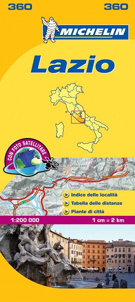 La edición actualizada del mapa Local Lazio, editado a escala 1/200 000, incorpora un índice de localidades, cuadro de distancias y planos de las ciudades de Roma, Tivoli y Viterbo.