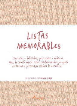 Las listas existen desde que existe la escritura. Si las cartas han sido hasta hace muy poco tiempo el instrumento de comunicación por excelencia, las listas permanecen, en cualquiera de sus formas, no sólo como una extensión de la memoria, sino como una ventana al corazón de las personas. Así, desde las aspiraciones más íntimas hasta las instrucciones para realizar una acción en particular, las listas reflejan con fidelidad las razones y emociones arraigadas en nuestro interior y son una herramienta natural para retener aquello que no deseamos, o no podemos, olvidar. Después de su exitosa recopilación de maravillosas misivas reunidas en Cartas memorables (Salamandra, 2014), Shaun Usher ha rastreado los archivos de medio mundo para crear una antología de listas igualmente diversa e interesante, que abarca desde la Edad Antigua hasta el presente y contiene algunas piezas estelares, como las tareas pendientes de Leonardo da Vinci, los propósitos para el año nuevo de Marilyn Monroe o los pros y los contras del matrimonio según la opinión de Charles Darwin. Además de una fascinante invitación a descubrir la infinita variedad de enfoques que propicia la realidad, Listas memorables es un reconfortante recordatorio de lo mucho que tenemos en común todos los seres humanos.