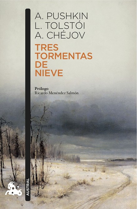Dos jóvenes amantes ven su amor truncado por las vicisitudes de una noche de fuerte tormenta. Una caravana de coches de caballos no encuentra las marcas del camino en medio de una tormenta; en uno de los coches, va un viajero entumecido que relata, entre el sueño y la vigilia, los padecimientos de las inclemencias del tiempo. La víspera de Navidad, una tormenta obliga a un hombre y a una mujer a pasar la noche conversando frente a la estufa de una posada. Este volumen reúne tres relatos de los grandes maestros de la literatura rusa: Pushkin, Tólstoi y Chéjov. Todos ellos relatan la experiencia de una tormenta de nieve, tres tormentas que son son una y la misma, puesto que guardan un eco común en el alma de los respectivos protagonistas. La tormenta es una metáfora espléndida para asomarse a la intimidad rusa: la tormenta es la tormenta del alma rusa.