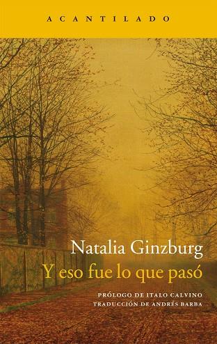 «Durante generaciones y generaciones?observa Italo Calvino en el prólogo de esta edición? lo único que han hecho las mujeres de la tierra ha sido esperar y sufrir. Esperaban que alguien las amara, se casara con ellas, las convirtiera en madres, las traicionara. Y lo mismo sucedía con las protagonistas de Ginzburg». Publicada en 1947, Y eso fue lo que pasó, la segunda novela de Natalia Ginzburg, es la historia de un amor desesperado; una confesión, escrita con un lenguaje sencillo y conmovedor, de la desgarradora lucidez de una mujer sola que durante años ha soportado la infidelidad de su marido y cuyos sentimientos, pasiones y esperanzas la abocan a extraviarse inexorablemente.