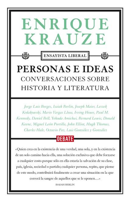 Este volumen contiene las espléndidas conversaciones de Enrique Krauze con pensadores y escritores de talla mundial, cuyo hilo conductor es la historia, el pensamiento liberal y la crítica de las ideologías. Entre otras, se incluyen entrevistas con Jorge Luis Borges, Irving Howe, Isaiah Berlin, Octavio Paz, Leszek Kolakowski, Charles Hale, Joseph Maier, Hugh Thomas, Paul Kennedy, Daniel Bell, Mario Vargas Llosa, Luis González y González y Miguel León Portilla.