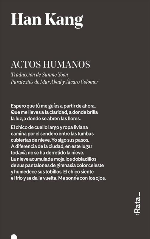 En mayo de 1980, en la ciudad de Gwangju el ejército sofocó una sublevación popular provocando miles de muertos. Actos humanos revive esos terribles sucesos a través de las experiencias de siete personajes diferentes: la tortura, el miedo, la angustia de no encontrar a los desaparecidos, el duelo, el sentimiento de culpa del superviviente, las pesadillas, las heridas, las secuelas, los reencuentros... Y el recuerdo de los muertos, su voz y su luz.