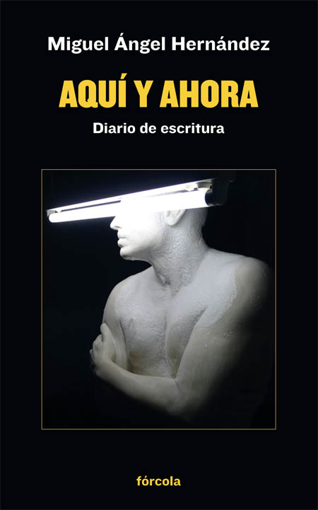 Miguel Ángel Hernández es un escritor melancólico que siempre ha escrito con mapa, pero que en esta ocasión aborda la redacción de su nuevo diario con brújula. En efecto, el diario de escritura Aquí y ahora no surgió motivado por un encargo, como sus anteriores entregas –Presente continuo y Diario de Ithaca–, sino por una especie de pulsión que llevó al diarista a documentar la toma de decisiones y las inquietudes en el proceso de creación de El dolor de los demás, su tercera novela, que le ha consagrado como «uno de los escritores europeos más destacados de su generación», en palabras de Enrique Vila-Matas. La novela acabó tomando la forma de un diario, tanto en la exploración de la intimidad y la vida cotidiana como en la reflexión sobre el proceso de escritura. Y el diario, a modo de un making of de la novela, llega a funcionar en sí mismo como una novela en curso, una narración con un objetivo en el horizonte –la redacción de un primer manuscrito– y con unos personajes y unas andanzas atravesados de principio a fin por la literatura.