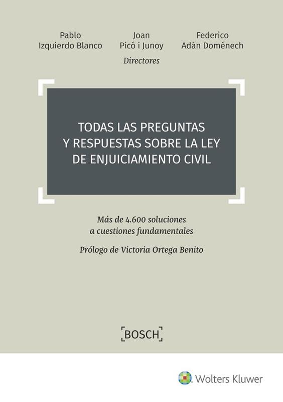 La presente monografía se presenta un valioso instrumento de consulta recurrente no solo para los Abogados y Procuradores de los Tribunales, sino también para Jueces y Letrados de la Administración de Justicia, pues aquí encontrarán resueltas miles de cuestiones, muchas de las cuales a buen seguro se las habrán formulado en alguna ocasión a lo largo de su actividad profesional y en la práctica forense diaria. En definitiva, se trata de una obra imprescindible para litigar con garantías. Aquí el lector encontrará más 4.600 preguntas y respuestas fundamentadas, todas ellas sistematizadas en base a los artículos de la LEC con los que están conexas, lo que facilita en gran medida la rápida localización de la cuestión que pueda resultar de su interés: ¿Qué ocurre cuando en una resolución judicial o procesal no se indica el plazo para recurrir; el que se indica es erróneo o se concede un plazo incorrecto para una determinada actuación procesal?; ¿Qué relación hay entre la mala fe procesal y el retraso desleal en el ejercicio de las acciones?; ¿Es suficiente una simple hoja manuscrita reconociendo una deuda?; ¿Qué sucede cuando hay pluralidad de reclamados en el pago monitorio y una se opone y el otro no?; ¿Puede el actor, en el declarativo posterior, añadir otras reclamaciones diferentes de la que constituyó su petición monitoria?; ¿Es suficiente la remisión por burofax para notificación extrajudicial del saldo al deudor cuando éste no atiende el requerimiento de correos?. Las respuestas se fundamentan en la jurisprudencia del Tribunal Supremo y de las Audiencias Provinciales, pero también en la doctrina surgida del Tribunal de Justicia de la Unión Europea –que tanta incidencia ha tenido, por ejemplo, en los art. 552.1.II, 695.1.4ª o 815.4 LEC–. Del mismo modo, en materia de ejecución civil, existen numerosas respuestas fundamentadas en la doctrina de la Dirección General de los Registros y del Notariado.