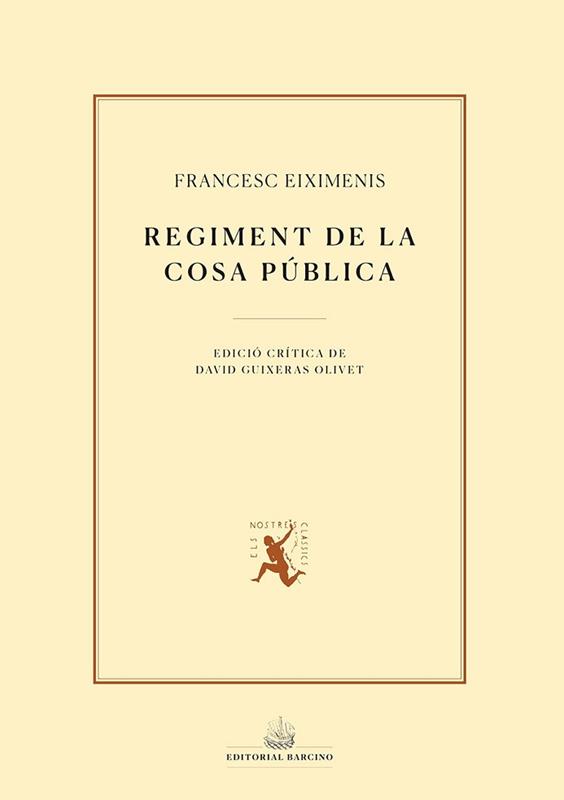 El Regiment de la cosa pública és el tractat polític que Francesc Eiximenis va dedicar als jurats de la ciutat de València el 1383. Sintetitza les idees polítiques d’Eiximenis relatives al govern de l’estat i, en particular, de la ciutat i és una obra fonamental en la configuració del sistema del pactisme català. Aquesta és la primera edició crítica del Regiment feta directament des del millor manuscrit conservat.