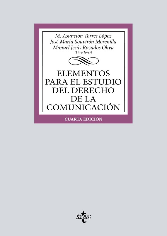 Elementos para el estudio del Derecho de la Comunicación es una obra que ofrece a los estudiantes de la materia Derecho a la información, Derecho de los medios audiovisuales y Derecho de las telecomunicaciones, impartida en aquellas titulaciones de Grado no esencialmente jurídicas, tales como Periodismo, Comunicación Audiovisual o Publicidad, unos materiales de estudio sencillos y con los conceptos jurídicos básicos, que le van a permitir un correcto desarrollo de su profesión. Se trata de un texto adaptado al perfil de este alumnado y a las características de su titulación. Cada una de las lecciones que integran la obra responde a una misma estructura, que se inicia con las palabras clave que identifican cada materia, a continuación se enumeran los objetivos que se pretenden conseguir en la misma, para pasar a una exposición sencilla y clara del contenido docente. Junto a ello, se ofrece un material didáctico que trata de facilitar el estudio y asimilación de cada una de las materias y que integra unas preguntas clave, test de autoevaluación, bibliografía específica, normativa de referencia y enlaces web de utilidad. Finalmente, cada lección se acompaña de tres actividades complementarias, enfocadas al perfil de la titulación, y que persiguen facilitar la aprehensión del contenido teórico, así como complementar algunos de los aspectos que no han podido ser objeto de suficiente atención en el bloque teórico.