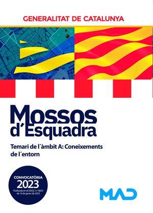 Aquest llibre forma part de la nostra proposta formativa per a la preparació de les proves d'accés a la categoría de l'escala bàsica del Cos de Mossos d'Esquadra de la Generalitat de Catalunya, conforme a la RESOLUCIÓ INT/35/2023, d'11 de gener, de convocatòria mitjançant oposició lliure per cobrir places de la categoria de mosso/a de l'escala bàsica del cos de Mossos d'Esquadra. Concretament, aquest Volum està dedicat a l'Àmbit A del Programa, Coneixements de l'Entorn, i conté l'anàlisi detallada dels seus 7 temes: Història de Catalunya (part I): de la formació de Catalunya al segle XVIII; Història de Catalunya (part II): la Catalunya contemporània (s. XIX-XXI); Història de la policia a Catalunya; Àmbit sociolingüístic; Marc geogràfic de Catalunya; l'entorn social i les TIC en el segle XXI. ÀMBIT A: CONEIXEMENTS DE L'ENTORN Tema A.1. Història de Catalunya (part I) Esquemes A.1. Tema A.2. Història de Catalunya (Part II) Esquemes A.2 Tema A.3. Història de la policia a Catalunya Esquemes A.3. Tema A 4. Àmbit sociolingüístic Esquemes A.4. Tema A.5. Marc geogràfic de Catalunya Esquemes A.5. Tema A.6. Entorn social a Catalunya Esquemes A.6 Tema A.7. Les tecnologies de la informació al segle XXI Esquemes A.7