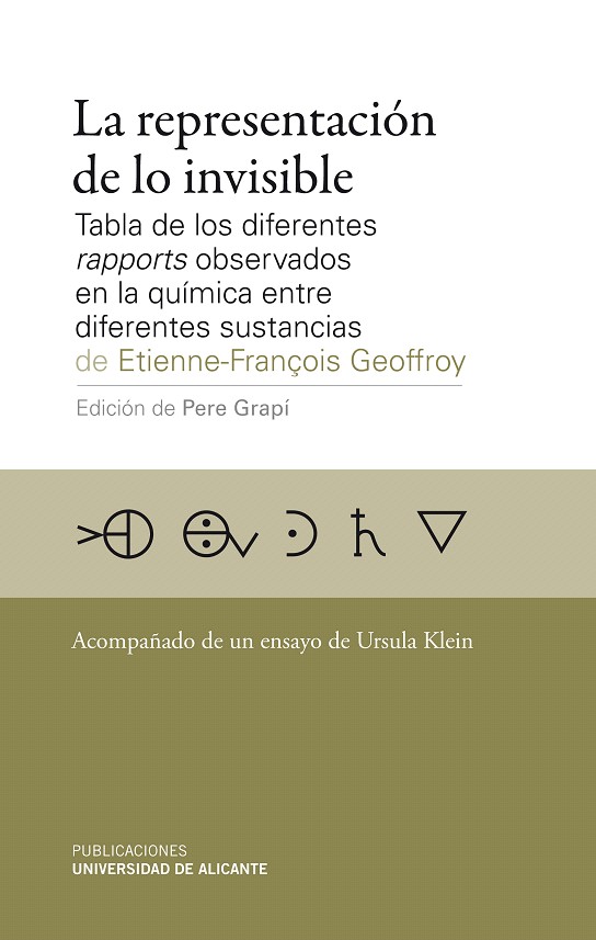 La lectura de los escritos científicos del pasado es una de las formas más eficaces de fomentar el interés por la cultura científica. A su poder divulgativo hay que añadir el interés didáctico que supone enfrentarse con el lenguaje y las ideas de los científicos del pasado. Sin embargo, esta enorme potencialidad divulgativa y didáctica se ve comprometida por la dificultad de comprender correctamente el significado de textos a menudo complejos y escritos en contextos históricos y desde visiones de la naturaleza muy alejadas de las nuestras. El objetivo de esta colección es producir ediciones de textos clásicos de la ciencia al alcance de todos los públicos interesados en la cultura científica y su historia. Los tres elementos básicos con los que se pretende alcanzar este objetivo y que constituyen los principales rasgos distintivos de los volúmenes de esta colección son la traducción anotada de los textos originales, los estudios introductorios hechos por historiadores de la química y las guías de lecturas. En el volumen de las Memorias de la Academica de Ciencias de París de 1718, el farmacéutico, médico y químico francés Étienne François Geoffroy publicó una memoria en la que explicaba el significado y el uso de una tabla en la que había representado con símbolos alquímicos un amplio grupo de sustancias químicas conocidas y las había ordenado en función de la diferente intensidad de las fuerzas ?los ?rapports? ? con las que se unían entre sí cuando eran puestas en contacto. Pere Grapí, profesor de enseñanza secundaria, docente e investigador asociado en la Universidad Autónoma de Barcelona y autor de numerosos trabajos sobre la teoría de las ?afinidades? químicas en el siglo XVIII, nos ayudará a comprender la estructura de la tabla de Geoffroy y el significado que este poderoso icono de la química tuvo en la ciencia de su época. En el ensayo final, Ursula Klein , profesora de la Universidad de Constanza e investigadora del Instituto Max Plank de historia de la ciencia de Berlín, nos desvelará un interesante secreto escondido durante mucho tiempo entre las filas y comunas de esta famosa tabla: el origen artesanal de la información en ella recogida.