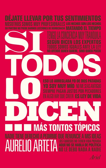 Prescindir de ellos, pues, exige ponerse a pensar lo que quizá no hemos pensado nunca, porque en ese mismo vacío se asienta buena parte de nuestras convicciones. En la estela de su libro anterior, Tantos tontos tópicos, Aurelio Arteta vuelve a cargar en Si todos lo dicen... contra otros cuantos clichés que nos confunden. Empecemos a sospechar de eso que siempre hemos creído evidente por ser lo que acostumbramos a escuchar, lo que todos aprueban y nadie discute, lo que nos asegura su acogida... Descubrir estas frases hechas, cuestionar sus pretensiones y remover su falsa solidez es un quehacer que todo sujeto debe imponerse. Una guía adecuada para ello puede ser esta topografía moral que el autor nos ofrece.