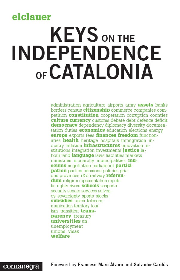 This is a book written against the fear. A tool made to provide some answers to the questions raised by the independence of Catalonia. Keys that foster the debate on the country we wish to build together. Keys elaborated from the certainty that the Catalan nation can only endure by means of a sovereign state. Keys written from the respect for truth and factchecked data. Keys delivered by fourteen civic entities from Catalonia to help us imagine how we should set up this free country that, finally, we have decided to achieve.