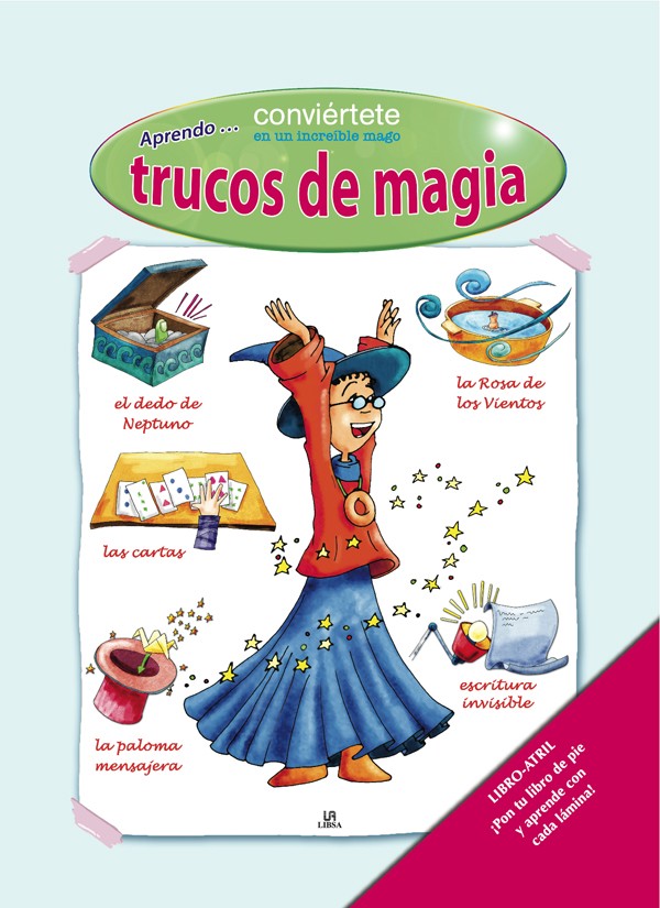 Libro con forma de atril para colocarlo de pie sobre la mesa y tener las manos libres para convertirse en un mago profesional. Con explicaciones muy claras de todos los trucos, como hacer desaparecer una pelota, cambiar de sitio una moneda, hacer tinta invisible y muchos más igual de divertidos.