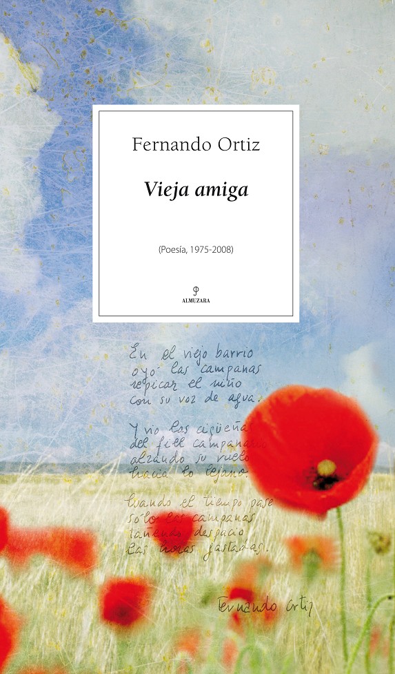 “Ya Eliot habló de que el ojo humano es capaz de aceptar poca realidad, porque es capaz de aceptar poco dolor. Ciega y duele la luz de la realidad. Y poco a poco entrecerramos los párpados para evitar en lo posible ese dolor. Hay un proceso de mineralización que a todos, a unos antes, a otros después, nos va afectando con el paso del tiempo. Por eso nos duele especialmente el paso del tiempo. Por eso la gran poesía de todas las culturas y de todas las épocas suele ser elegíaca. “Se canta lo que se pierde”, dijo don Antonio Machado en breve sentencia, y cantamos con dolorida rabia porque lo que se nos va, aun viviendo, es la propia vida. Antes que esto ocurra, física o espiritualmente, deseaba escribir estas líneas. Quería dejar dicha mi absoluta fe en la Poesía.” Vieja amiga es la antología de la poesía de Fernando Ortiz desde sus inicios en 1975 hasta el presente. El propio autor ha realizado la selección y edición del texto en su integridad y desea que sea la referencia de citas de toda su poesía ya que incluye todos sus libros, todas las últimas correcciones, versiones, inéditos, etc., además de un prólogo y una amplia bibliografía en torno al autor. Es la versión más definitiva de su obra poética y, como tal, la mejor referencia para acercarse a este poeta.