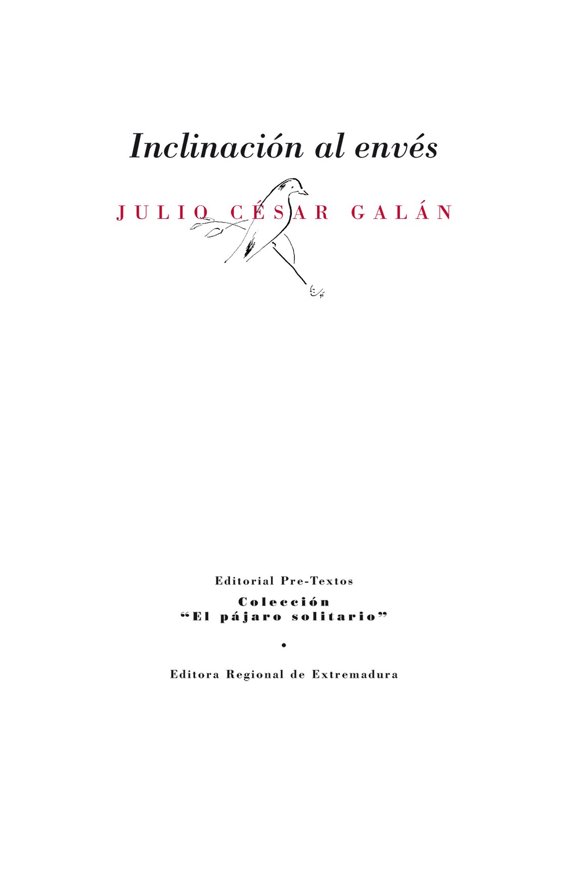 Julio César Galán (Cáceres, 1978). Ha sido lector de español en la Universidad de Argel, profesor visitante en la Universidad de Castelo Branco y actualmente lo es en la Universidad de Islas Baleares. Autor de los siguientes poemarios: El ocaso de la aurora (Sial, 2004), Tres veces luz (La Garúa, 2007) y Márgenes (Pre-textos, 2012, premio de poesía Villa de Cox); además ha publicado como heterónimo: Gajo de sol (Abezatario, 2009), de Luis Yarza y ¿Baile de cerezas o polen germinando? (Ediciones Idea, 2010), de Pablo Gaudet. Colaborador habitual de la revista Cuadernos hispanoamericanos. Algunos de sus poemas se tradujeron parcialmente al checo, francés, italiano y árabe.