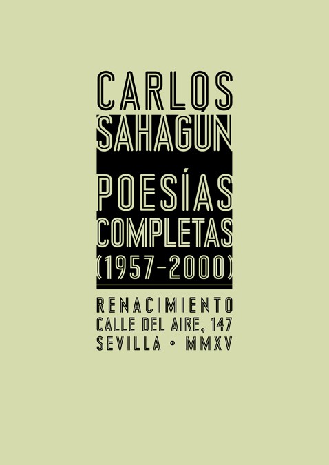 Estas Poesías Completas fueron corregidas por el autor y preparadas para imprimir unas semanas antes de su fallecimiento. Reúne la totalidad de los libros publicados por Carlos Sahagún (Onil, Alicante, 1938-Madrid, 2015) con la excepción de los sonetos de una plaquette de 1955, e incluyendo, bajo el epígrafe de «Últimos poemas 1978-2000», 28 poesías inéditas de un libro cuyo título, El lugar de los pájaros, no consideró recuperar. El poeta ha manifestado, en varias ocasiones, que no ha escrito poesía después del año 2000. Con esa fecha ha cerrado este libro.
