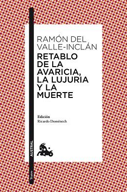 Aunque incomprendido en su tiempo, el teatro de Valle-Inclán es una creación genial; su obra teatral lo convierte en uno de los mejores dramaturgos en lengua castellana del siglo xx. Retablo de la avaricia, la lujuria y la muerte agrupa cinco piezas que configuran un «retablo» mítico en el que se mueven todos los pecados capitales. La gran lección que Valle-Inclán enseña es que la realidad no consiste sólo en lo que vemos en apariencia, sino en lo que podemos presentir a través del simbolismo del lenguaje: el misterio de la vida y la muerte. Ricardo Doménech, catedrático de la Real Escuela Superior de Arte Dramático, que ha preparado esta edición, ofrece en su estudio introductorio una doble lectura que guía, a través de la superficie de los textos, hacia su significación simbólica.