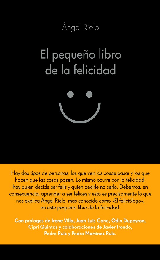Hay dos tipos de personas: las que ven las cosas pasar y las que hacen que las cosas pasen. Lo mismo ocurre con la felicidad: hay quien decide ser feliz y quien decide no serlo. La felicidad no es un don sobrenatural, un bien del que solo pueden disfrutar unos pocos privilegiados. Existen determinadas actitudes y predisposiciones mentales que alimentan la felicidad, y cultivarlas está al alcance de todos, como demuestra en este libro el cómico y guionista Ángel Rielo. Cuando el mal humor, la agresividad y la ley del más ladrador imperan, cuando la gente va por el mundo con cara de perro, este pequeño manual hace bandera de todo lo contrario: el positivismo, el optimismo y la alegría pueden lograr grandes transformaciones, empezando por nosotros mismos. Un libro que combina teoría y práctica, datos y anécdotas ¡para que te conviertas en todo un feliciólogo!
