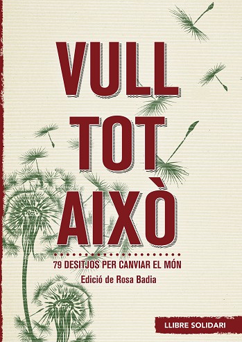 Un llibre solidari vinculat a la campanya «Cap nen sense joguina» de Ràdio Barcelona, a la quals es destinaran els beneficis. Cada dissabte des de fa anys Rosa Badia convida a intel·lectuals, artistes, escriptors, periodistes, il·lustradors, músics, actors i gent de tota mena a parafrasejar el conegut poema de José Agustín Goytisolo «Quiero todo esto». El resultat el trobem en aquest llibre il·lustrat on els desitjos, lliures i inconformistes, de 79 persones s'acaben convertint en reflexions profundes i divertides alhora. Els participants: Ada Parellada ? Alicia Giménez Bartlett ? Ana María Moix ? Antonio Muñoz Molina ? Arcadi Oliveres ? Arturo San Agustín ? Borja Sitjà ? Care Santos ? Carles Flavià ? Carles Romeu ? Carol López ? Clara Segura ? Constantino Romero ? Eduard Estivill ? Elvira Lindo ? Emili Teixidor ? Enric Majó ? Enrique Vila- Matas ? Espido Freire ? Estel Solé ? Fermí Fernández ? Gervasio Sánchez ? Godoy ? Guillermina Motta ? Imma Colomer ? Isaías Lafuente ? Isona Passola ? Jaume Figueras ? Javier del Pino ? Javier Olivares ? Javier Pérez Andújar ? Joan Font ? Joan Isaac ? Joan Pere Viladecans ? Jordi Dauder ? Jordi Évole ? Jorge Wagensberg ? José Martí Gómez ? Juan Carlos Ortega ? Juli Capella ? Leo Bassi ? Llucia Ramis ? Lluís Amiguet ? Lluís Bassat ? Lluís Pasqual ? Lluís-Anton Baulenas ? Lucía Caram ? Luis García Montero ? Manel Joseph ? Màrius Carol ? Màrius Serra ? Maruja Torres ? Mònica Planas ? Muriel Casals ? Nancho Novo ? Nando Cruz ? Narcís Comadira ? Núria Espert ? Núria Ribó ? Olga Merino ? Óscar Nebreda ? Pau Miró ? Paula Bonet ? Pere Riera ? Pilarín Bayés ? Queco Novell ? Rosa Cullell ? Rosa Maria Calaf ? Rosa Regàs ? Roser Capdevila ? Sergi Pompermayer ? Sergio Vila-Sanjuán ? Sisa ? Toni Puntí ? Vicente Verdú ? Vicky Peña ? Victoria Pagès ? Xavi Vidal ? Rosa Badia