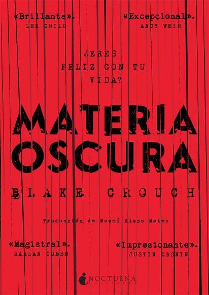 CUALQUIER DECISIÓN SE RAMIFICA EN UN NUEVO MUNDO. Jason Dessen vive en Chicago, donde ha renunciado a sus grandes aspiraciones científicas para dar clases y centrarse en su familia. Una noche, tras asistir a la celebración en honor de un antiguo compañero galardonado con un importante premio de astrofísica, Jason se dirige a casa? y nunca llega. Un hombre oculto tras una máscara de geisha lo conduce a punta de pistola a una central eléctrica abandonada, donde le inyecta algo. Cuando recobra la conciencia, unos desconocidos con trajes especiales lo reciben con las palabras «bienvenido de nuevo». Pero esta realidad no es la que conoce: su mujer no es la misma, su hijo no ha nacido y él ni siquiera es profesor. ¿Es este mundo un sueño? ¿O acaso lo era su vida anterior?