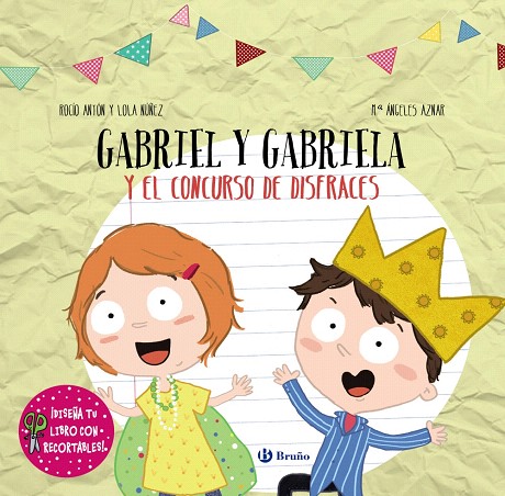 Esta noche se celebra el famoso concurso de disfraces de Villalegría y Gabriel y Gabriela quieren ganarlo, ¡así que se visten de forma totalmente disparatada y divertida y salen de casa camino a Villalegría! ¿Conseguirán ganar el concurso? Un cuento de aventuras, de corte clásico y pinceladas de humor, con una característica del todo original y divertida: los lectores deberán completar las ilustraciones en blanco con los recortables que encontrarán en las láminas estampadas.