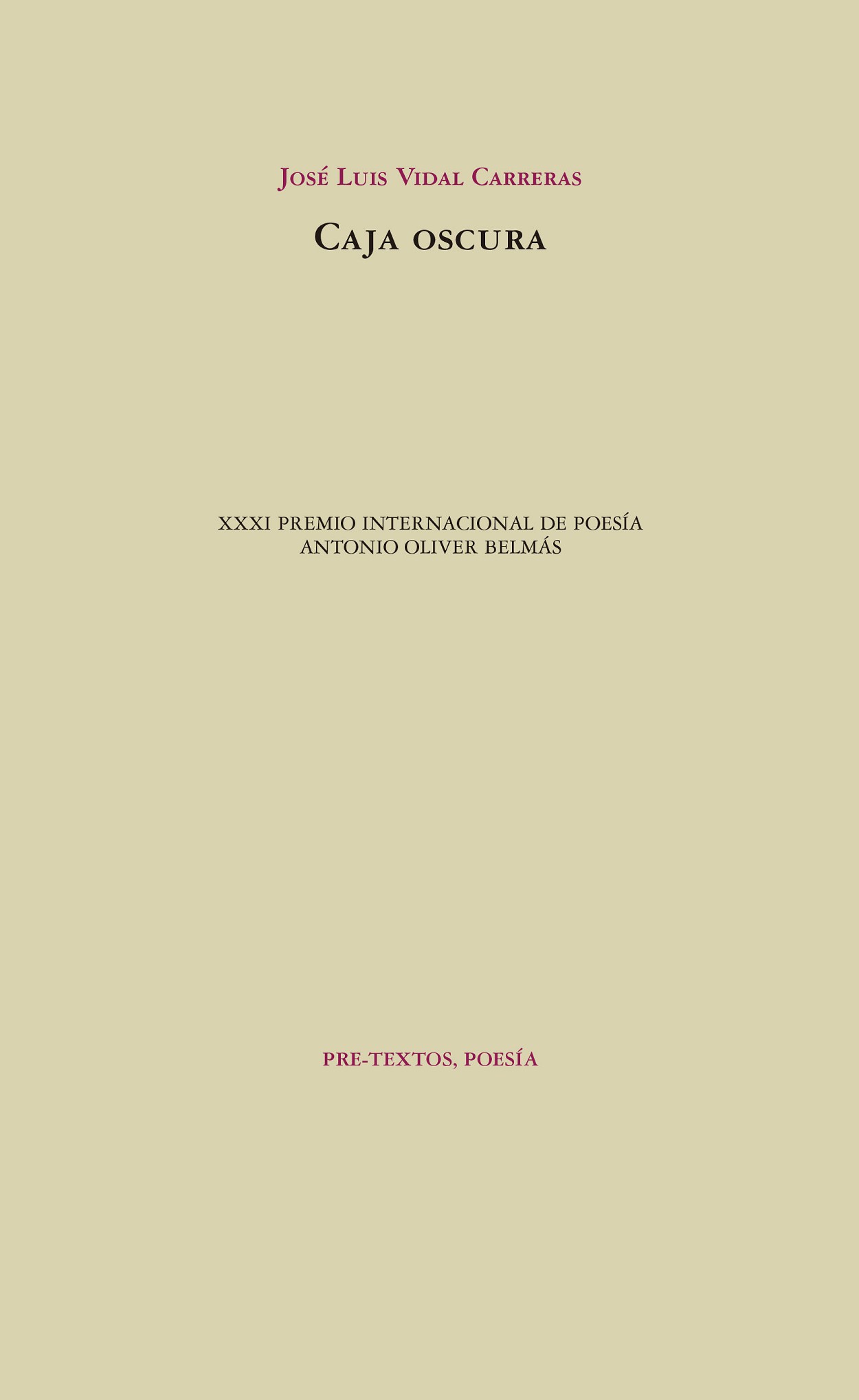 El mundo es una caja oscura.Al alba tú la abresy miras dentro.Las orugasse afanan con la luz02026;,no acaban nunca.Y en la agoníade su esfuerzo inútilhallan el hilo de oroque te complace.0201C;Caja oscura0201D;, de José Vidal Carreras.José Luis Vidal Carreras (Vitoria, 1954). Cursó en Alicante sus p...