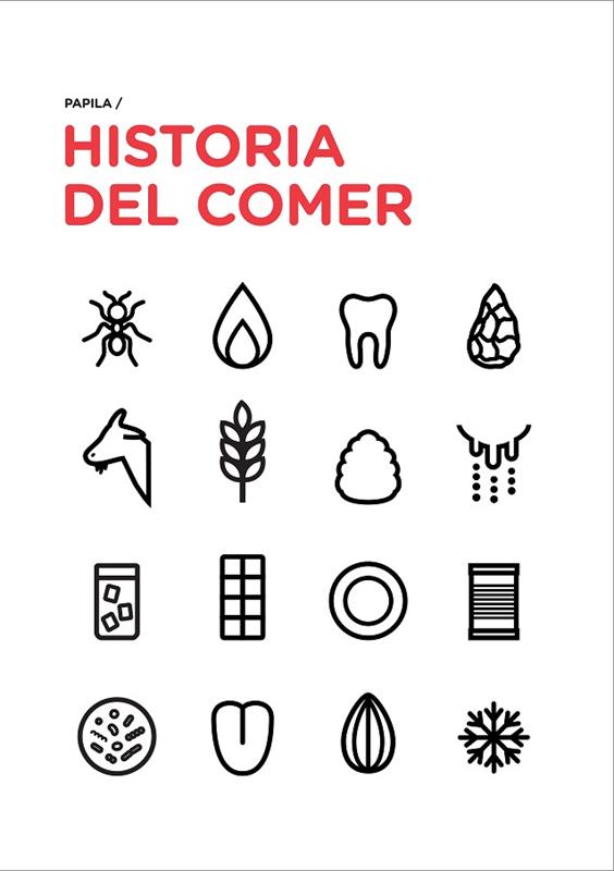 La historia de la alimentación de la humanidad, explicada mediante símbolos minimalistas y expresivos. ¿Sabías que cocinar los alimentos cambió nuestro cuerpo? ¿O que el abrelatas no se inventó hasta 50 años después de la lata? Todo esto y mucho más se explica en "Historia del comer", un proyecto que explica de forma cronológica la evolución de la relación de los seres humanos con los alimentos, desde el paleolítico hasta la actualidad. El espectacular diseño del libro, informativo y divertido a partes iguales, ha sido desarrollado por el estudio Papila, especializado en diseño gastronómico. Un tema poco explorado pero tremendamente interesante, en un lenguaje sencillo y divulgativo, apto tanto para niños como para adultos.