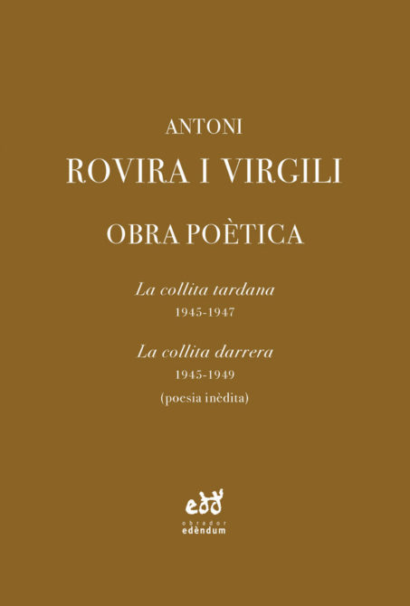Estoig que conté els dos volums d'obra poètica d'Antoni Rovira i Virgili, "La collita tardana" (1945-1947) i "La collita darrera" (1945-1949) (poesia inèdita). Les obres incorporen les esmenes fetes a mà per l'autor en un exemplar imprès, i publica una selecció de poemes inèdits.