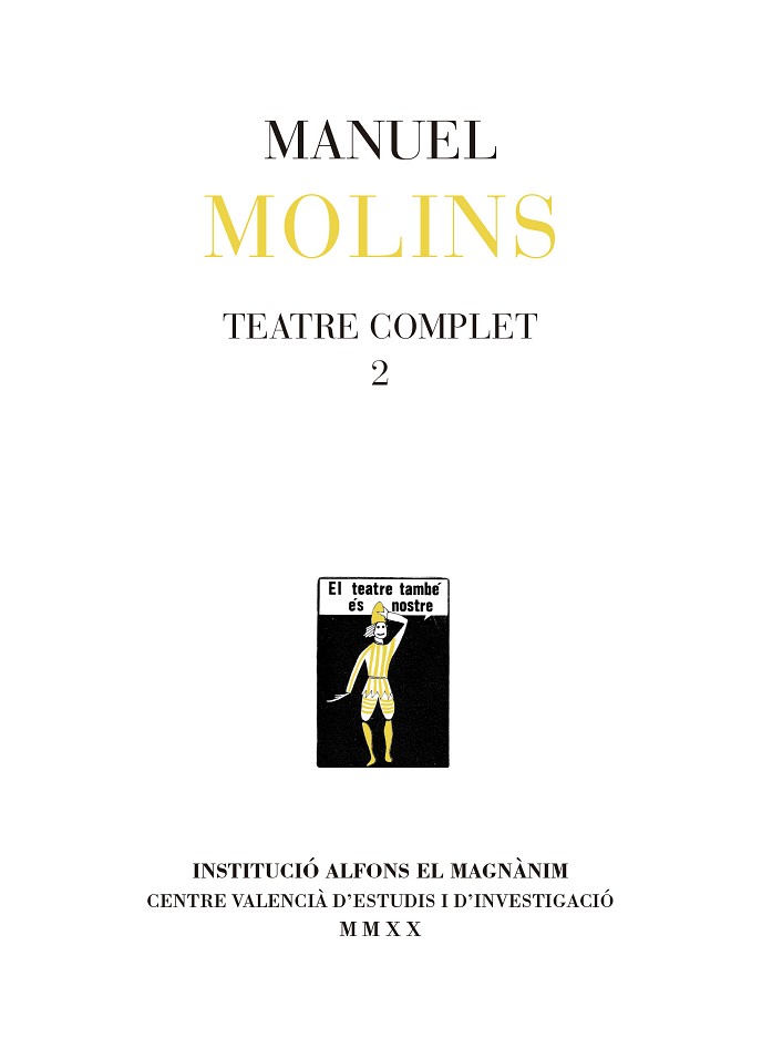 Segon volum de la recopilació de tota l'obra teatral de Manuel Molins. Les obres estan agrupades en quatre sèries: «Trilogia d’exilis», «Mirades sobre Shakespeare», «Llums i ombres valencianes» i «Peces curtes».