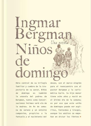 Obra central de su trilogía familiar y cumbre de la trayectoria de su autor, Niños de domingo es también la «novela del padre» de Bergman, tanto como Conversaciones íntimas será «la de la madre». Un fin de semana de verano y un entorno campesino, propicios a la fantasía y al nacimiento del deseo, son el marco elegido para el reencuentro con el pastor Bergman y la carismática Karin. Su hijo menor tiene ocho años y nació en el último día de la semana; es por eso que este «niño de domingo» puede ver espíritus, fantasmas y trasgos, aunque los adultos se empeñan en dictar los límites de la realidad: «No hay fantasmas, no seas bobo, ni demonios ni muertos que abran sus bocas ensangrentadas al sol». El miedo a la vejez (que siempre es escatológica) y a la muerte, el primer despertar sexual y una temprana crisis de fe asaltan al pequeño Pu, que no es otro que un jovencísimo Ingmar, aunque «cada niño en la obra de Bergman —nos dice Margarethe von Trotta— es él mismo». El estilo de este Bergman ya anciano es paradójicamente juvenil, se diría desaliñado, poco dado a perfilar lo ya escrito, y por eso mismo es ágil, es incisivo, y vibra, cuando no aletea. Una engañosa sencillez y la sensualidad propia de la mirada infantil gobiernan el planteamiento, y un puente invisible acaba uniendo esta obra maestra con aquella otra sembrada de Fresas salvajes.