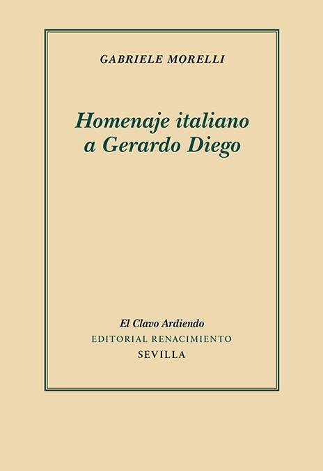 Homenaje italiano a Gerardo Diego, más que un ensayo es un tributo que el conocido hispanista Gabriele Morelli rinde a Gerardo Diego. En él se recuerdan sus viajes a Italia, sus versiones de poetas italianos y la relación que tuvo con sus traductores. Además, dado el hermanamiento existente entre Diego y Leopardi, se ofrece un minucioso cotejo del soneto «Insomnio» con el idilio «La sera del dì di festa» del autor de «L’infinito», que trata el mismo tema. Pero, sobre todo, el Homenaje presenta el conocido soneto de Diego en sus tres borradores (el último, inédito), estudia su rico entramado verbal y se sumerge en la fuente de inspiración del poema, ejemplo perfecto de la humana aspiración al amor y a la belleza.