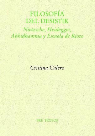 La profunda indagación que presenta Filosofía del desistir reivindica, a través de la mirada histórica y filosófica, el regreso de la contemplación como parte fundamental del conocimiento; y este retorno únicamente puede procurarse desde el diálogo profundo entre Occidente y Oriente, que ya tuvo momentos de enriquecimiento mutuo en etapas claves del pasado determinantes para nuestra mirada. Los parlamentos propuestos van hilando el camino, partiendo, en un primero, de la concepción del sujeto y el acercamiento a la naturaleza de la conciencia desde la filosofía de Nietzsche y los textos budistas del Abhidhamma, para seguir el recorrido, en parlamentos posteriores, a través del pensar nietzscheano y las distintas etapas de la filosofía de Martin Heidegger, ambas en continuo diálogo con los pensadores de la Escuela de Kioto, Nishida, Tanabe y Nishitani. Desde el comienzo hasta su término, la totalidad del texto crea un círculo que regresa de nuevo al principio, con el fin de hallar el inconocimiento que siempre forma parte de nuestro conocer y la posibilidad de su presencia en una filosofía del desistir.