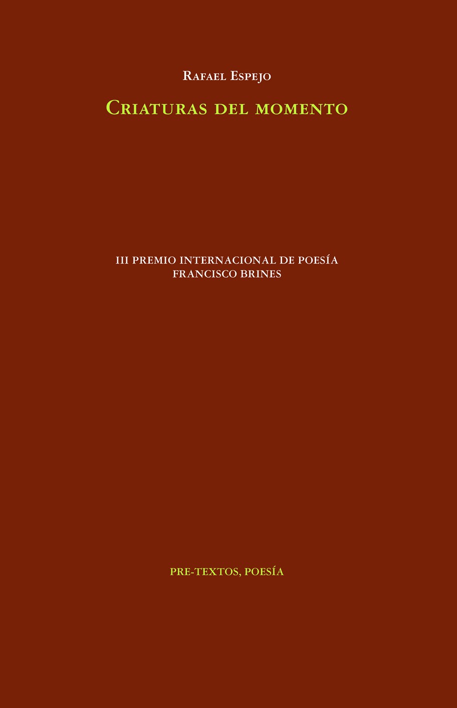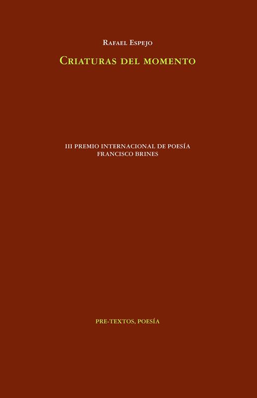 En Criaturas del momento se concentra una visión de mundo donde gozo y melancolía son uno y lo mismo. Los poemas responden a un proceso de artesanía lingüística que, no obstante, trasciende el oficio creando emocionantes escenas sobre la infancia, el amor, el cosmos o la fugacidad de todo cuanto existe. Se trata probablemente del libro más armonioso de Rafael Espejo.