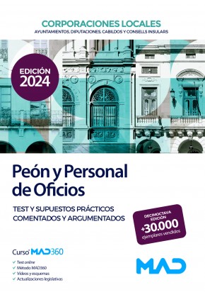 Manual que contiene los test y supuestos prácticos para la preparación de las pruebas selectivas de acceso a plazas de Peón y Personal de Oficios de las distintas Corporaciones Locales.
