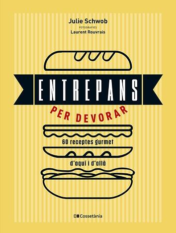 UN LLIBRE AMB FOTOGRAFIES A TOT COLOR AMB MÉS DE 60 RECEPTES CREATIVES PER DEVORAR BONS ENTREPANS. Julie Schwob ens fa descobrir en aquest llibre noves maneres d'obsequiar-nos en el dia a dia amb més de 40 receptes d'entrepans imaginatius i apetitosos, dolços i salats, per a tots els gustos! Des dels clàssics (hamburguesa, entrepà de formatge gratinat o de pollastre fregit) fins als que ens fan viatjar (_hot dog, banh mi_, falàfel, _gordita_ mexicana o _katsu sando_ japonès), l'autora ho aprofita per oferir-nos una panoràmica extensa dels ingredients essencials per fer uns bons entrepans: els pans per fer-se un mateix a casa i les salses i els condiments per amanir-los. En total, més de 60 receptes creatives i gurmet per devorar bons entrepans a casa! * Fotografies de Laurent Rouvrais
