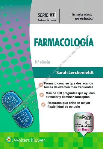 Serie RT. Farmacología presenta, en un formato conciso y accesible, los fundamentos de la farmacocinética y la farmacodinámica, junto con un desarrollo claro de la farmacología específica de los distintos grupos de fármacos, organizados por sitio de acción, principio químico o tipo de efecto farmacológico.