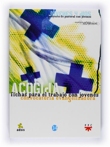El libro Acogida es la primera carpeta de "fichas para el trabajo con jóvenes", correspondiente a la primera subetapa de la Convocatoria Evangelizadora, Acogida. Las fichas son propuestas metodológicas para desarrollar el proyecto Jóvenes y Dios en cada una de las diferentes subetapas. Se trata de instrumentos concretos para dinamizar el proceso que cada educador, acompañante o equipo habrá de aprovechar de forma original y creativa, partiendo de su propia realidad, la de la comunidad que los envía y la de los jóvenes a los que se dirige.