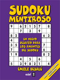 Si ya eres un experto en sudokus o simplemente un aficionado curioso que quiere ir más allá, el sudoku mentiroso significará un nuevo reto pues plantea una dificultad añadida respecto a la resolución convencional que ya conocemos. En el sudoku mentiroso la clave está en que entre los números que figuran en la plantilla, hay uno que es falso, es "mentiroso". Así, siguiendo las leyes lógicas del sudoku, debes primero averiguar cuál de esos números es falso y, después, resolver el puzle del modo habitual. En estos 100 sudokus, divididos en fáciles, medios y difíciles, podrás disfrutar de un reto más exigente y divertido sin perder la esencia de este estimulante juego.